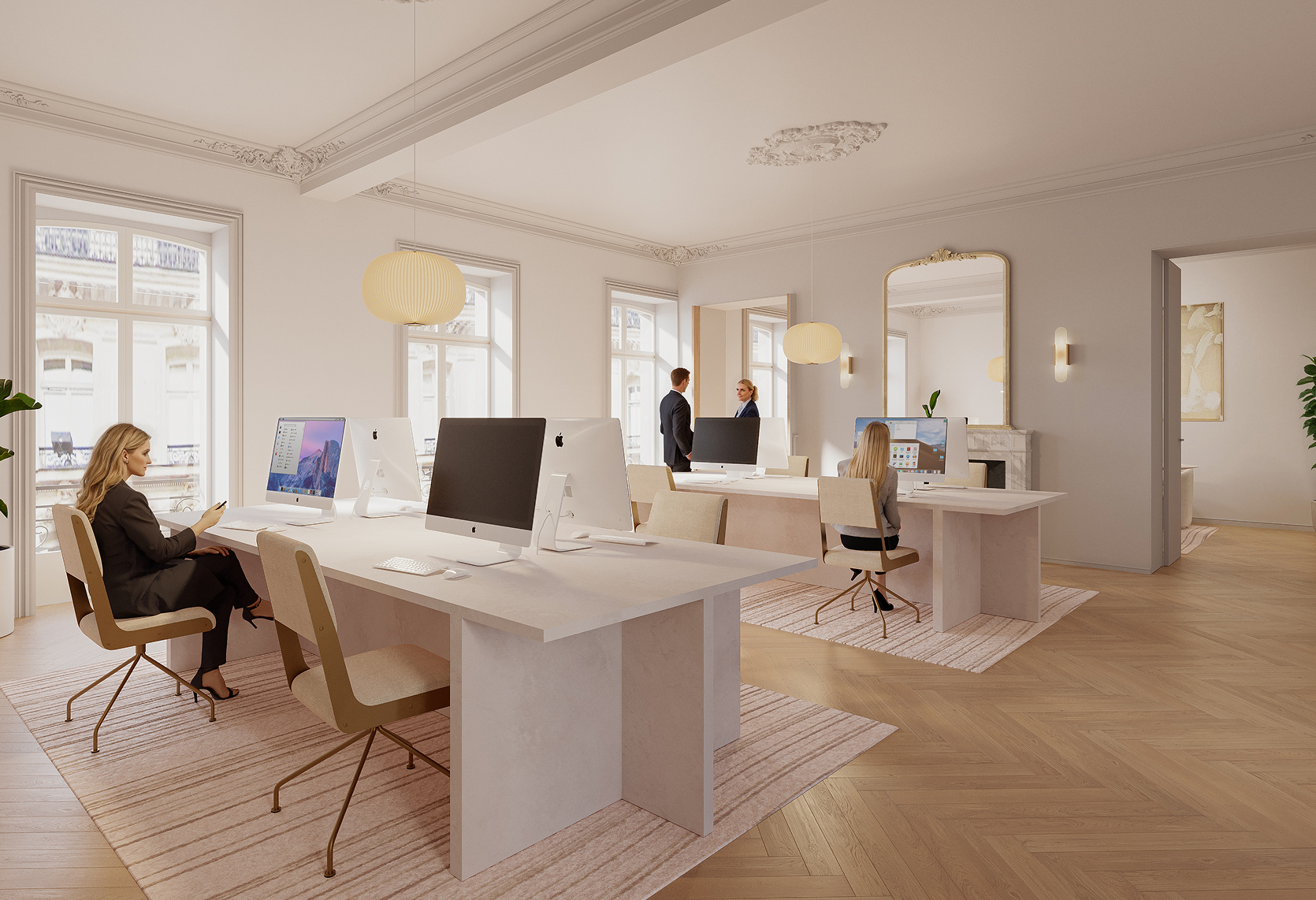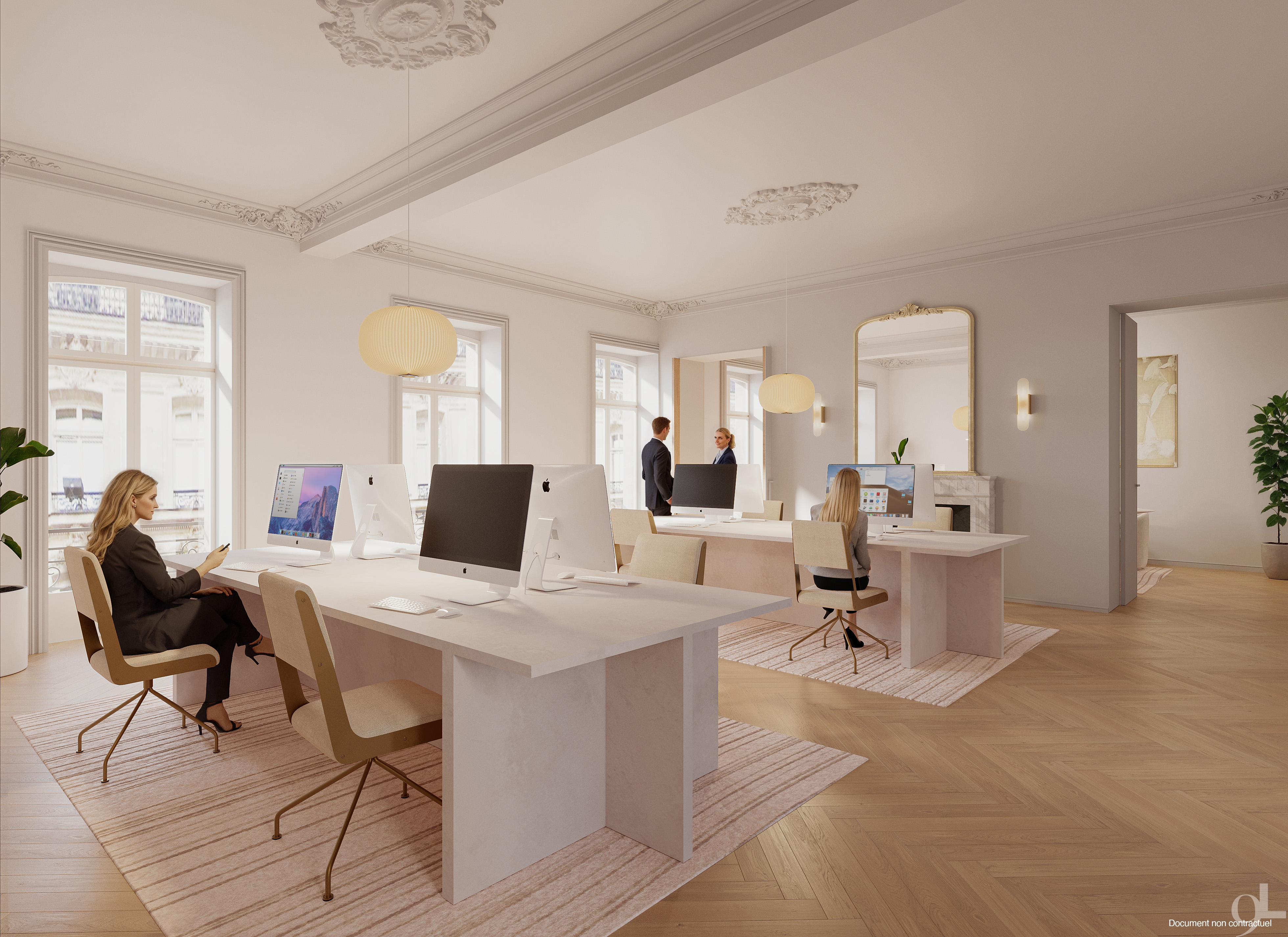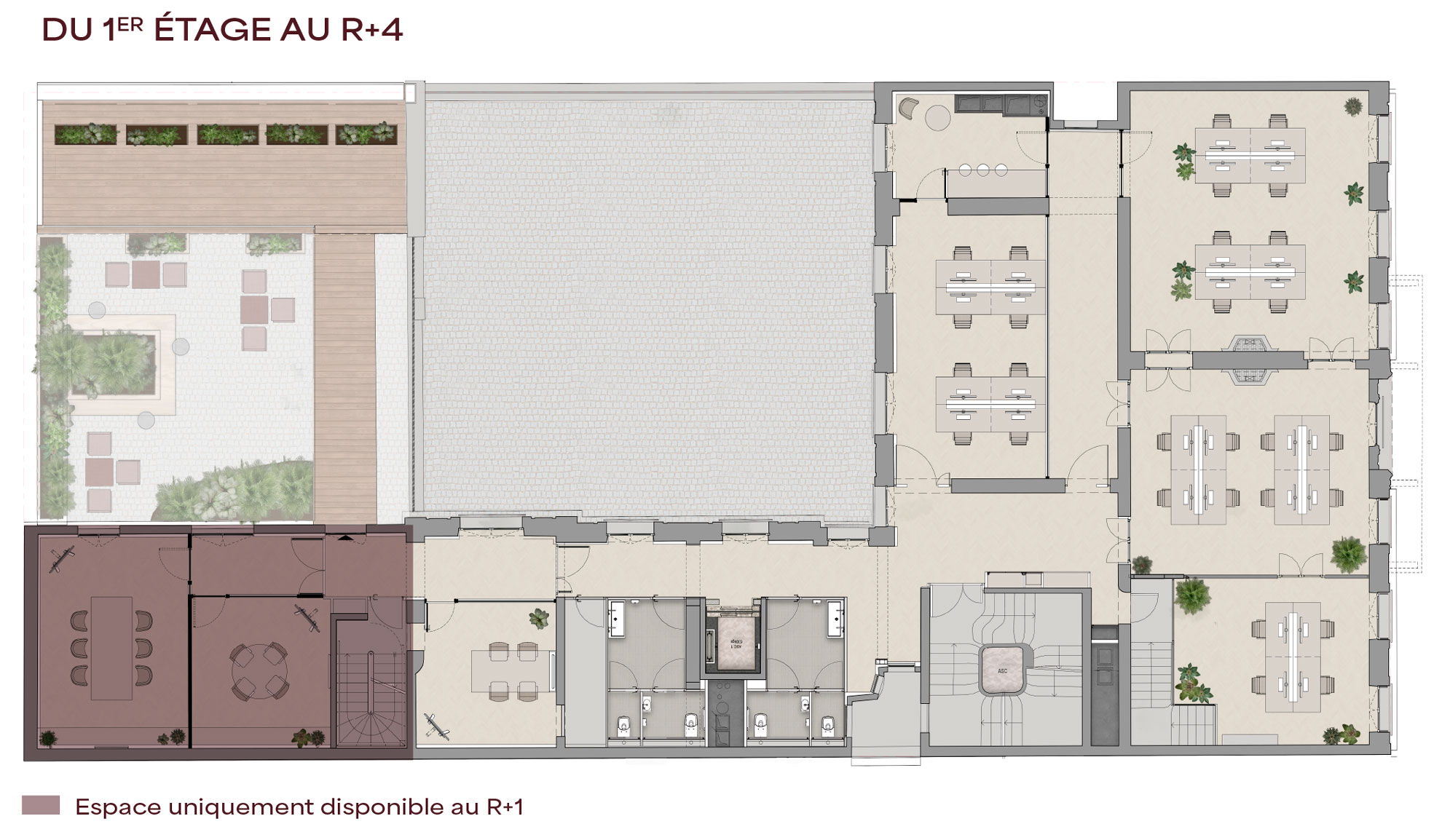 Derrière ses façades patrimoniales, l’immeuble déploie des espaces de travail modernes, baignés de lumière, où le confort et la nature trouvent leur place. Cafétéria, terrasse, fitness ou business club :