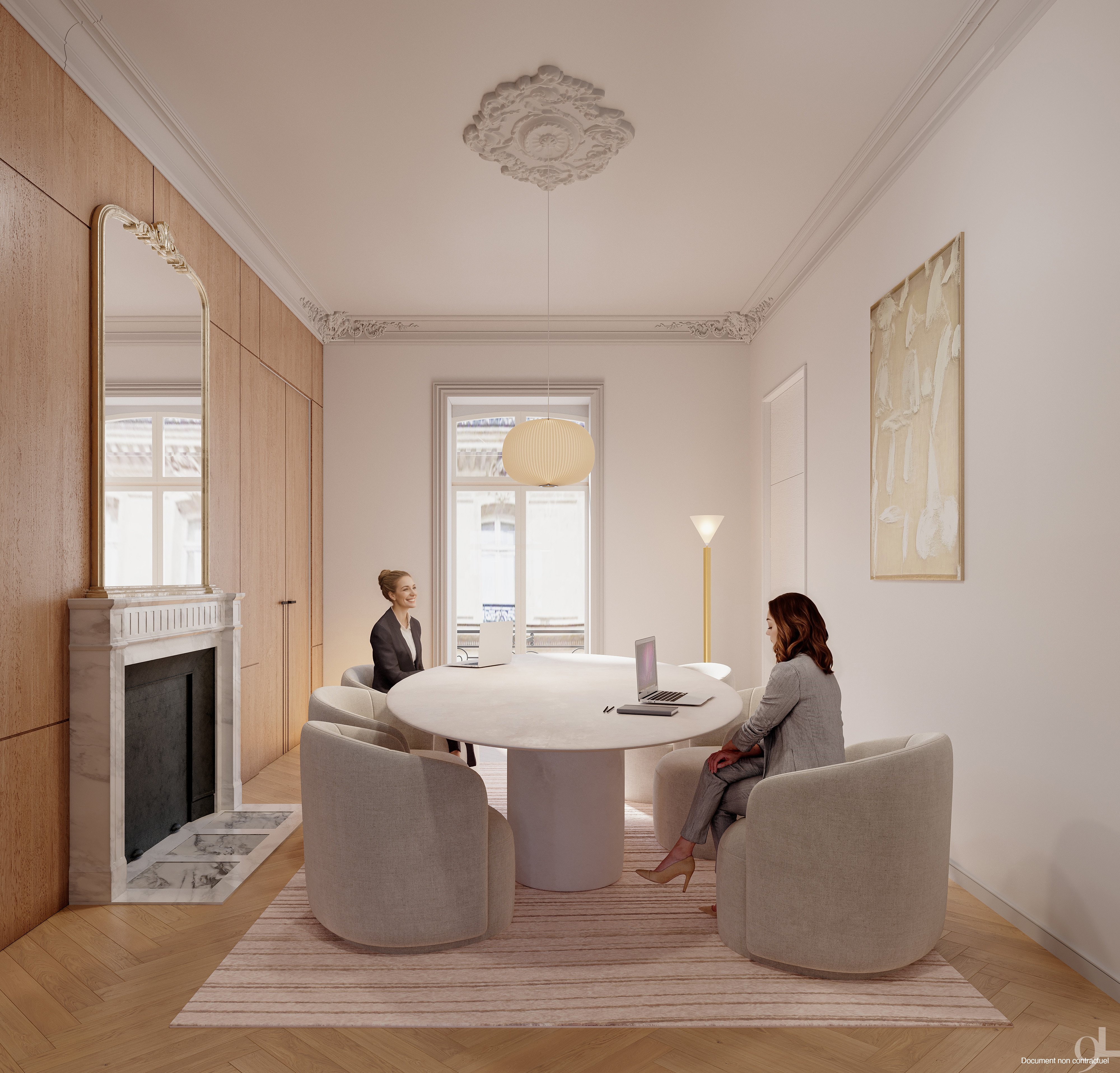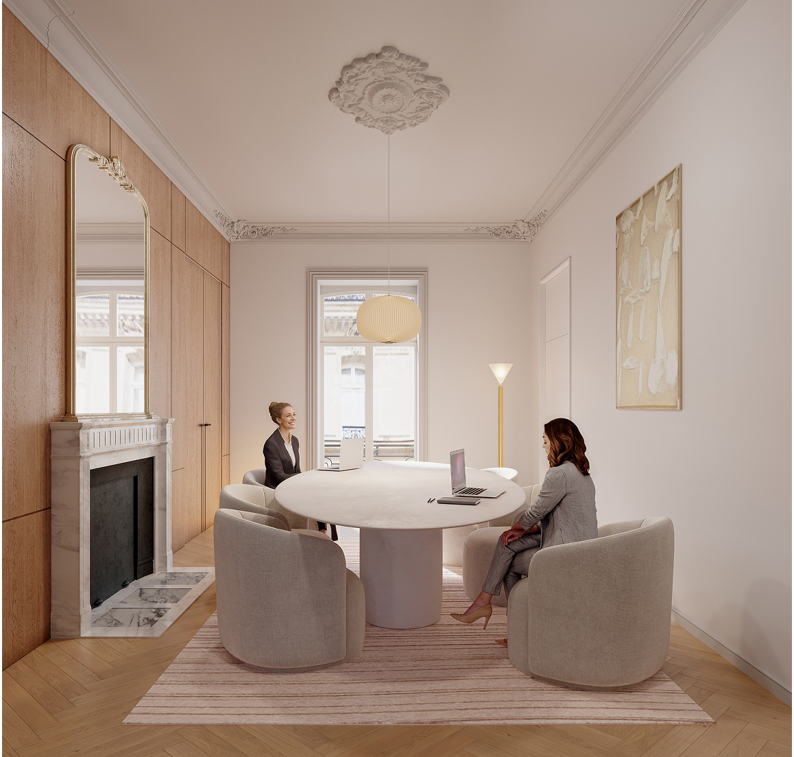La lumière circule librement, glisse sur les murs et traverse les patios, révélant la simplicité des volumes généreux. Entre salles patrimoniales, bureaux confidentiels et espaces partagés, chaque lieu trouve sa juste place, entre calme, ouverture et modernité.