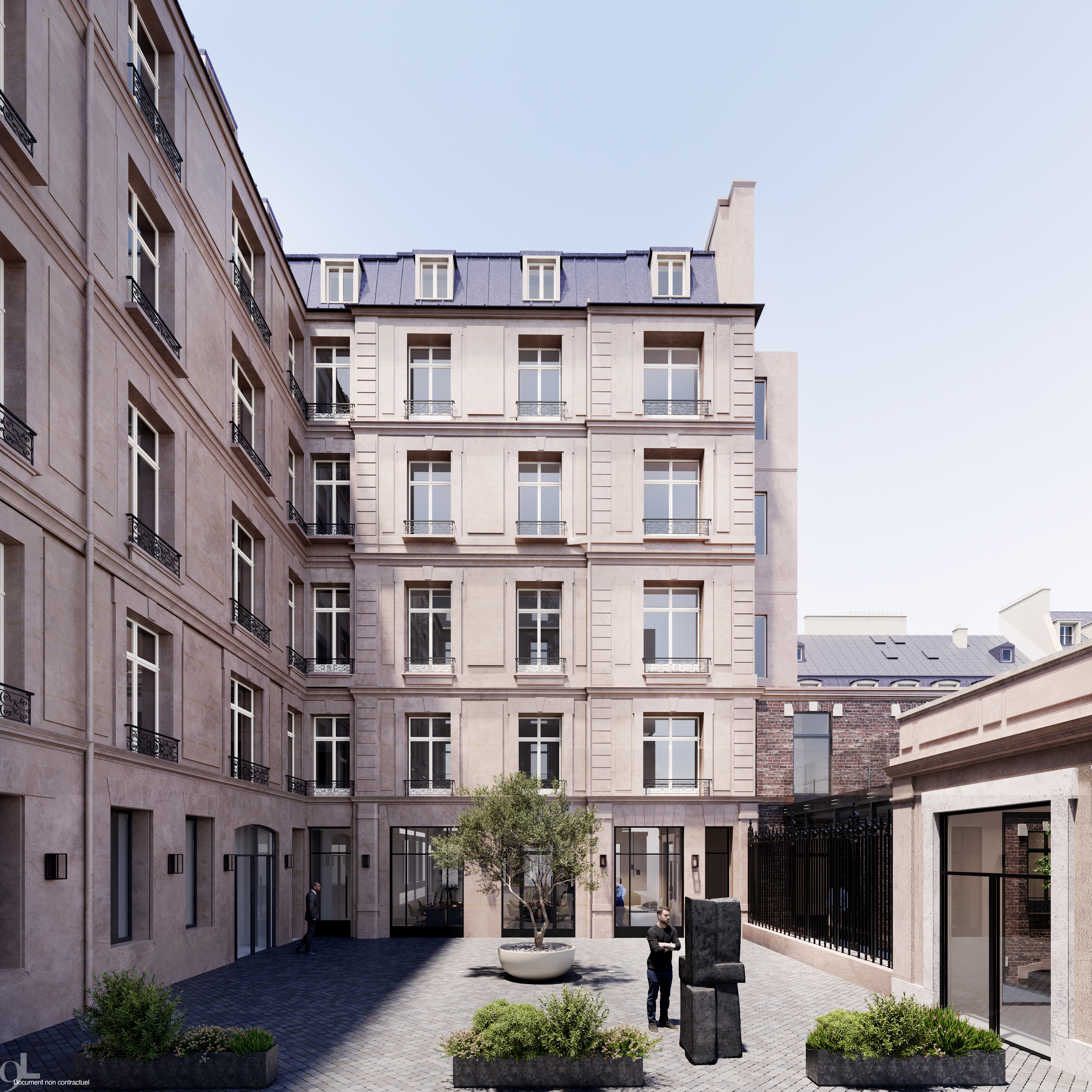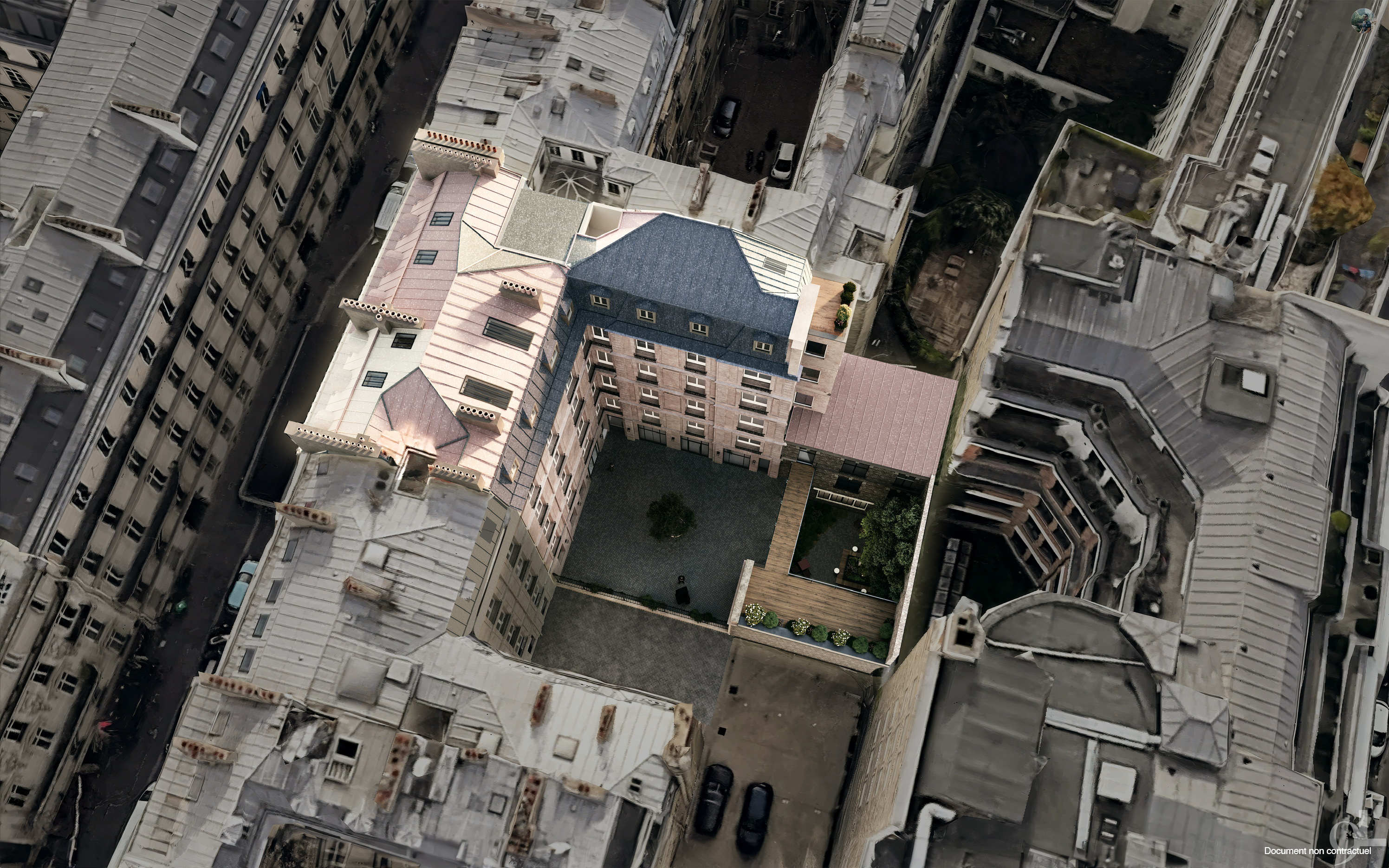 - Surfaces techniques & extension : création d’un sous-sol partiel pour accueillir les locaux techniques (chauffage urbain CPCU, climatisation Fraîcheur de Paris, ventilation double flux).