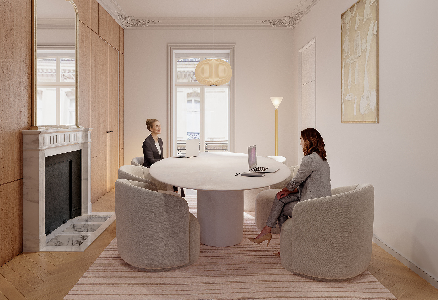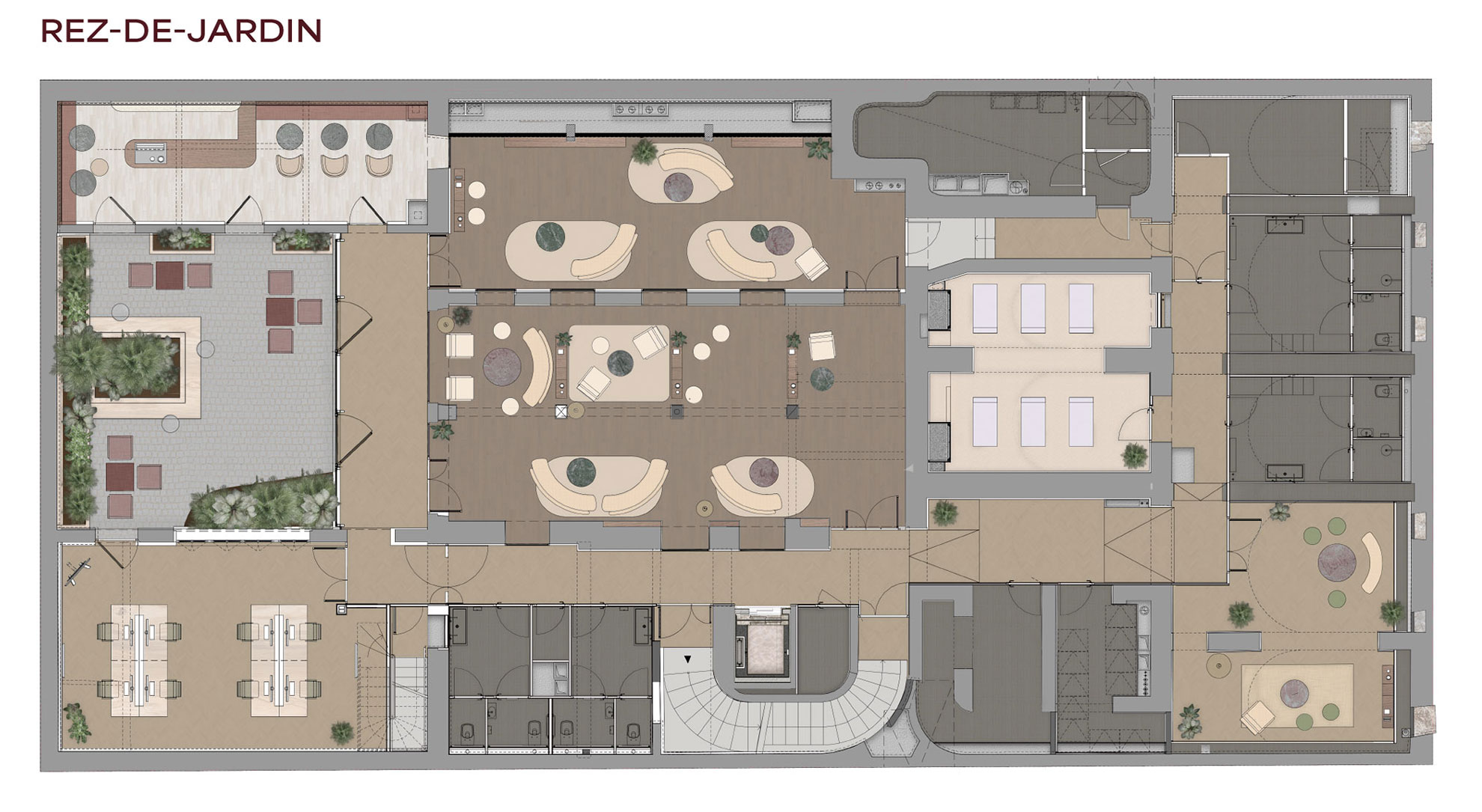 La lumière circule librement, glisse sur les murs et traverse les patios, révélant la simplicité des volumes généreux. Entre salles patrimoniales, bureaux confidentiels et espaces partagés, chaque lieu trouve sa juste place, entre calme, ouverture et modernité.