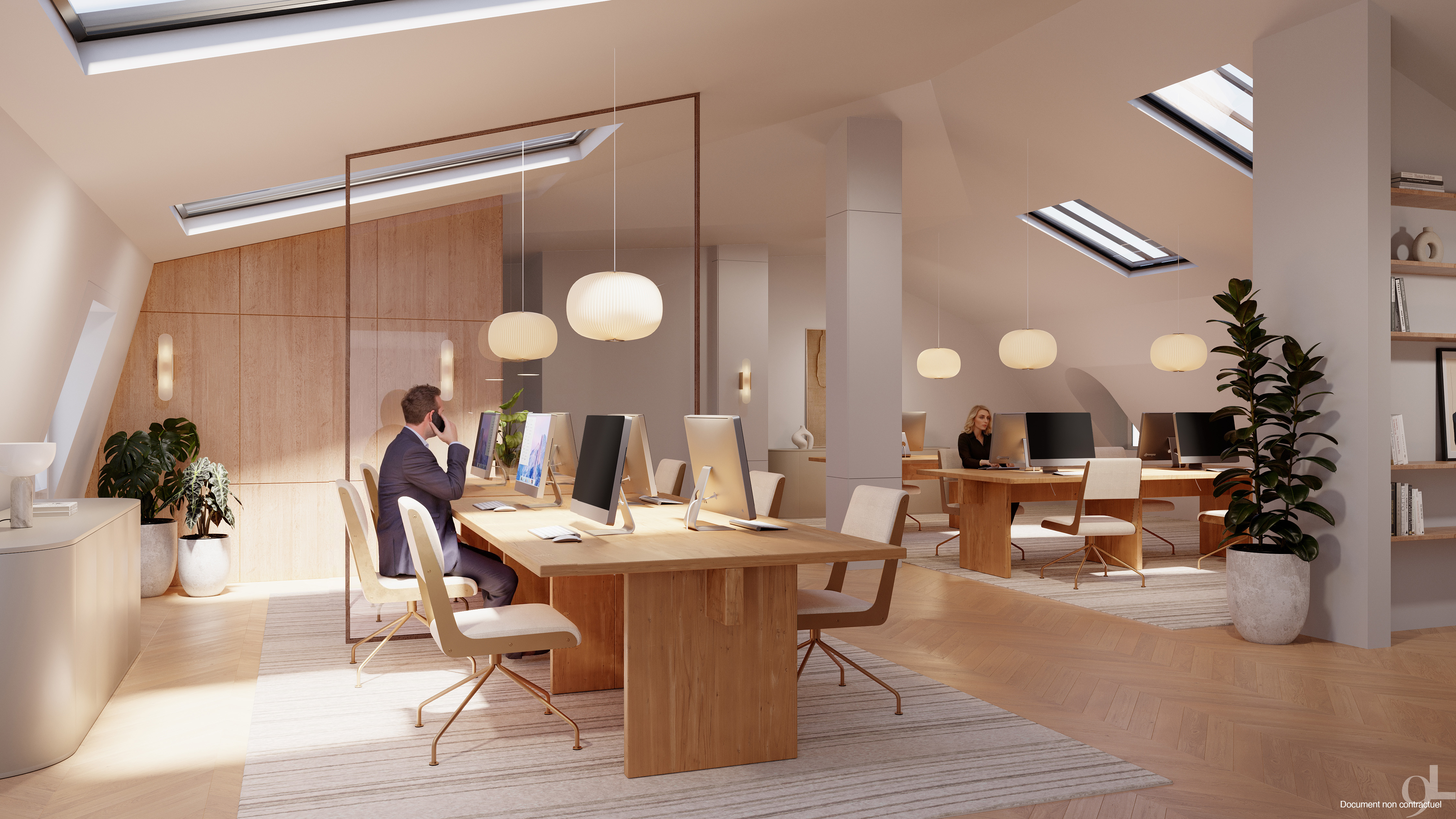 L’ensemble des postes bénéficie d’un éclairage naturel en premier jour, complété par des hauteurs sous plafond remarquables de 3 à 4 mètres, renforçant le confort et la flexibilité des espaces de travail.